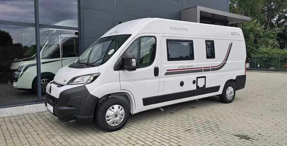 GiottiVan 60 Be Young to wyjątkowy kamper typu van z limitowanej serii Limited Edition, stworzony dla osób, które chcą podróżować lekko, nowocześnie i z pełną swobodą. Kompaktowy, łatwy w prowadzeniu, a jednocześnie zaskakująco przestronny – idealny na rodzinne wyjazdy, spontaniczne wyprawy z przyjaciółmi lub romantyczną podróż we dwoje. Ogromną zaletą tego modelu jest możliwość spania dla 4 osób na dwóch stałych łóżkach podwójnych – bez konieczności rozkładania i składania przestrzeni dziennej. Co więcej, jeśli podróżuje tylko para – górne łóżko można całkowicie zdemontować, zyskując dodatkową przestrzeń bagażową lub otwartą strefę dzienną z wyjątkowym poczuciem przestrzeni.